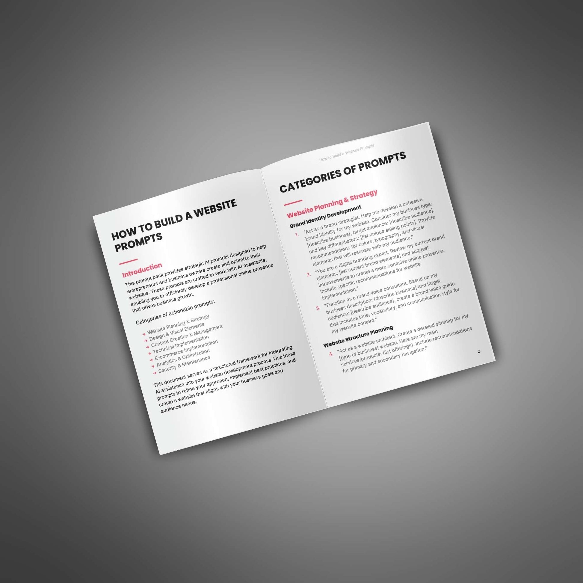 A powerful prompt pack that simplifies website creation. Whether you are launching a new site or improving an existing one, this pack provides actionable prompts to guide toward a professional and high-performing online presence.